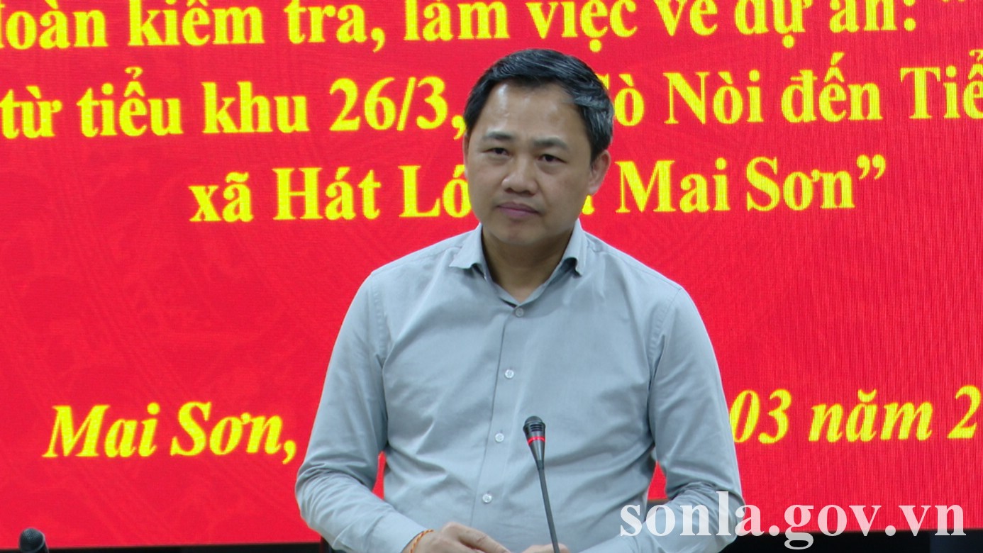 (sonla.gov.vn) Ngày 03/3, đồng chí Nguyễn Đình Việt, Phó Bí thư Tỉnh ủy, Chủ tịch UBND tỉnh đã có buổi kiểm tra thực địa và làm việc về tiến độ triển khai Dự án đường giao thông từ tiểu khu 26/3 đến tiểu khu 10, xã Mai Sơn. Cùng đi có đồng chí Nguyễn Minh Tiến, Phó Chủ tịch UBND tỉnh và lãnh đạo các sở, ngành liên quan.