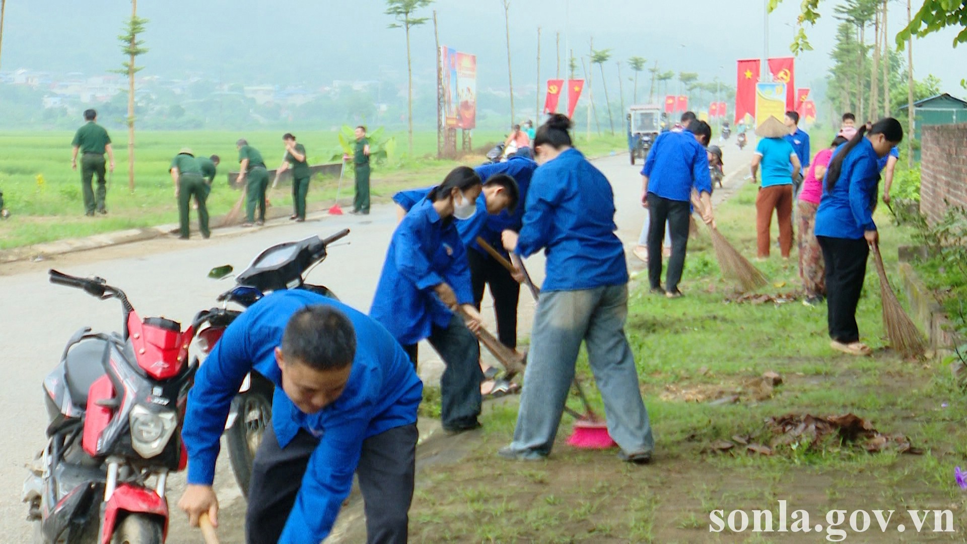 Cán bộ, đoàn viên và nhân dân ra quân vệ sinh môi trường, xây dựng cảnh quan xanh - sạch - đẹp.
