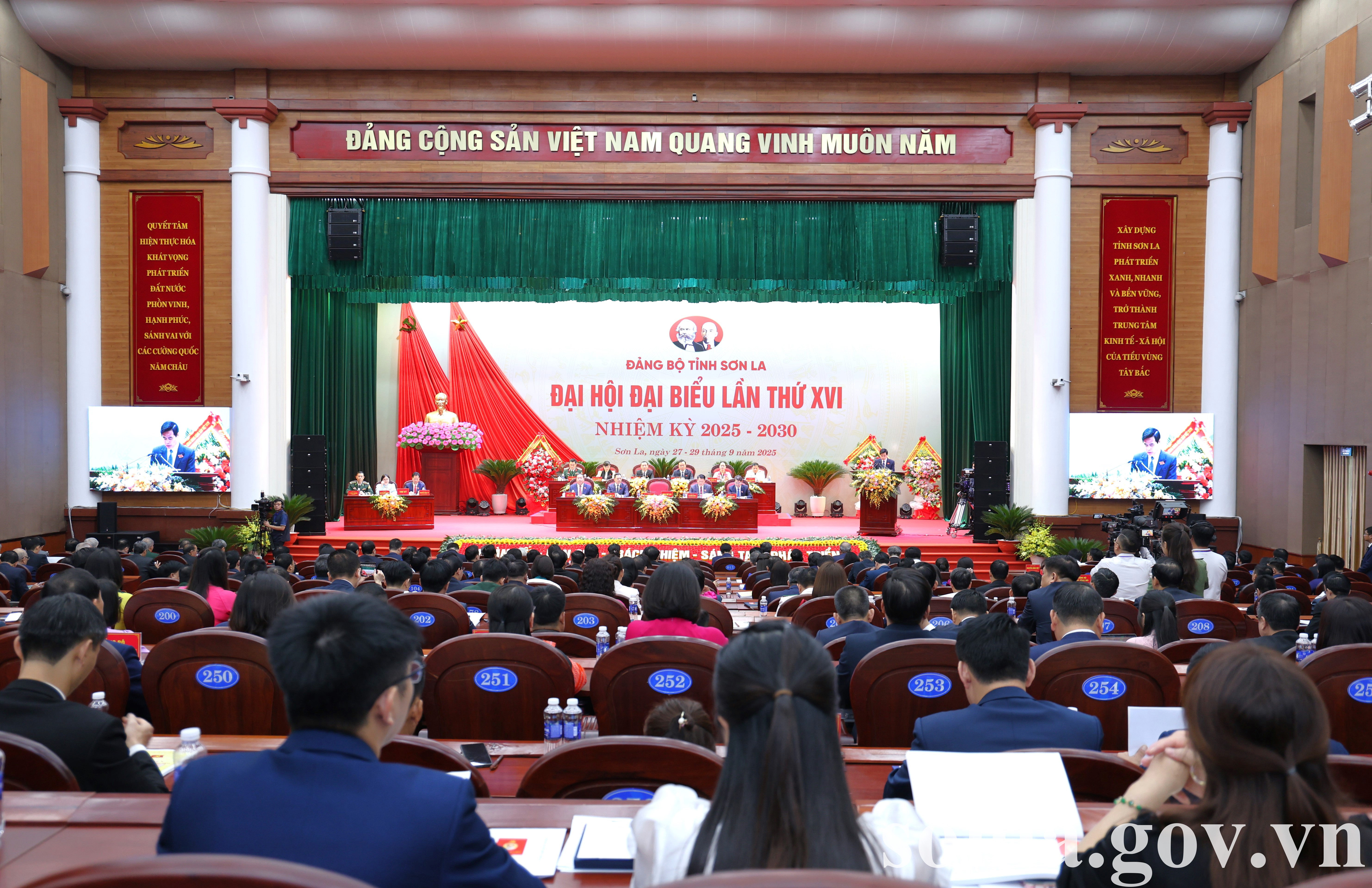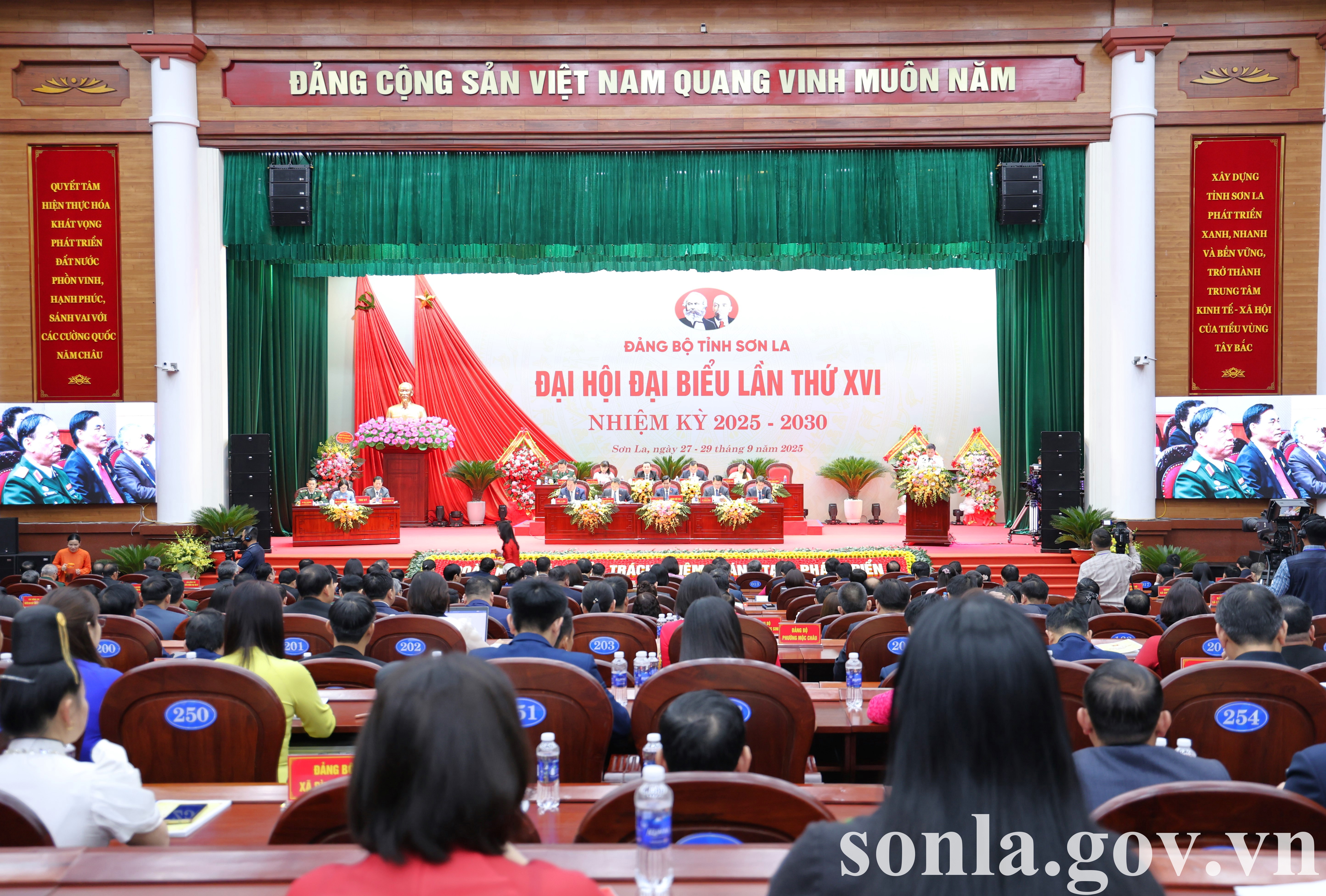(sonla.gov.vn) Sáng ngày 28/9/2025, tại Trung tâm Hội nghị tỉnh, Đảng bộ tỉnh Sơn La đã khai mạc trọng thể Đại hội đại biểu Đảng bộ tỉnh Sơn La lần thứ XVI, nhiệm kỳ 2025 - 2030. Đại hội vinh dự được nhận lẵng hoa chúc mừng của đồng chí Tô Lâm, Tổng Bí thư Ban Chấp hành Trung ương Đảng.
